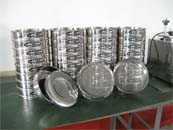 3、沖孔板試驗篩,按GB6003.2-1997標準加工。符合國際標準ISO3310-2:1990 R20/3,R20,R40/3系列。同時我公司也生產與φ200標準試驗篩配套的拍擊式試驗篩機、標準篩機。拍擊式試驗篩機、標準篩機符合國家標準,較多可安裝8層標準振動篩,設備裝有定時器可定時關機,保證每次生產或試驗的一致性。